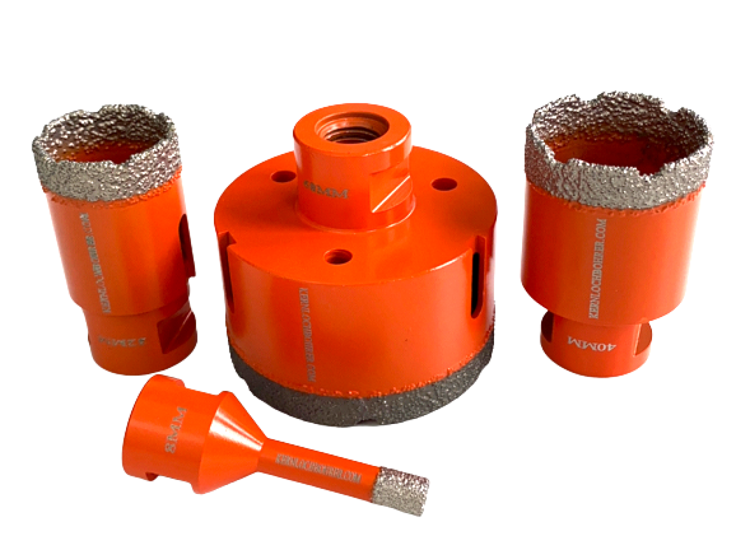 Die Bohrkronen verfügen über hochwertige, diamantbeschichtete Schneidflächen, die eine lange Standzeit und konstant saubere Schnitte ermöglichen. Die spezielle Segmentstruktur sorgt für gleichmäßigen Bohrfortschritt und verhindert Ausbrüche an der Oberfläche.